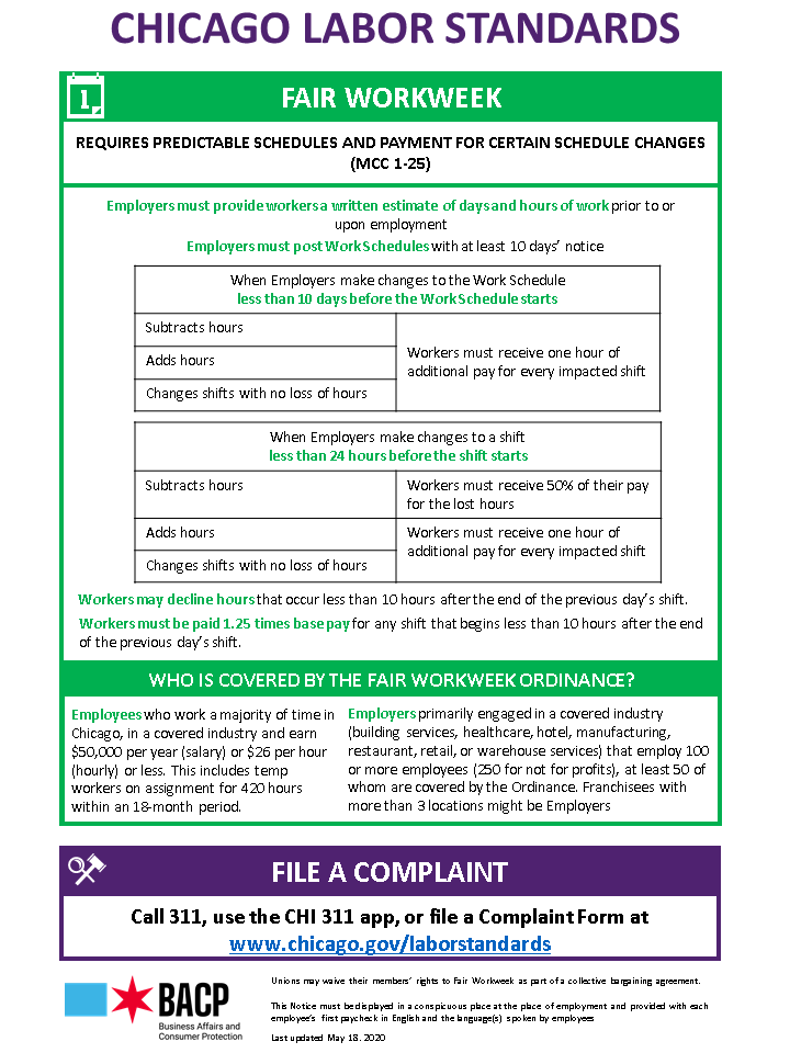 City of Chicago Fair Workweek Ordinance in Effect July 1, 2020