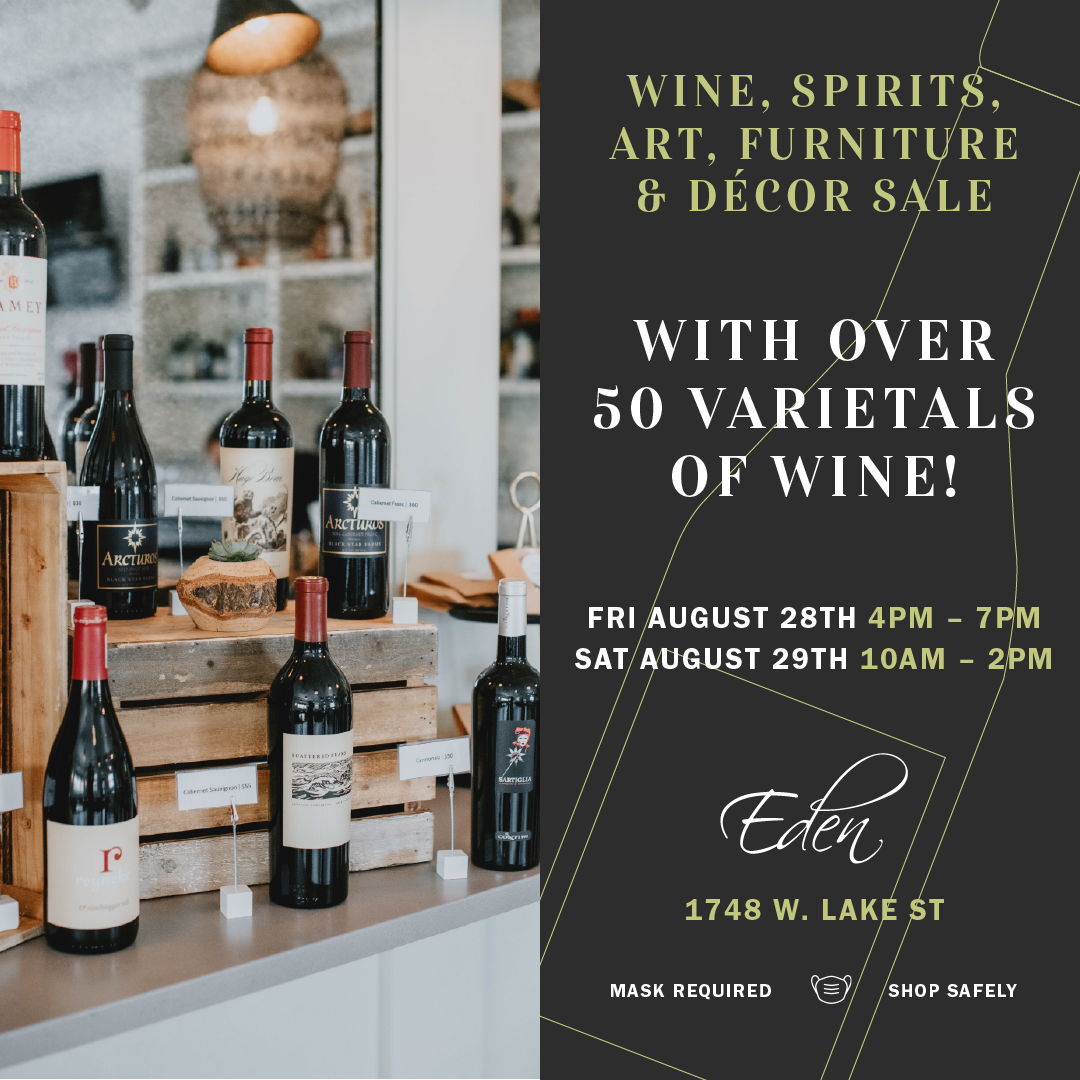Thank you to everyone that attended and our panelists from Ateema Media & Marketing and Isabelli Partners for joining yesterday's webinar on marketing and PR strategies to use right now to engage with customers and drive business. This webinar was provided in partnership with Cook County Board President Toni Preckwinkle and the Cook County Community Recovery Initiative. Click here to watch the recording. Click here to download the presentation. Eden Wine, Decor, Furniture and More for Sale Tonight and Tomorrow