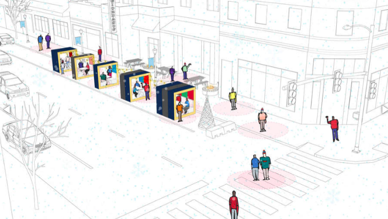 Yesterday, Mayor Lightfoot announced the winners of the Winter Design Challenge – a first-of-its-kind competition for community members to reimagine the winter outdoor dining experience in Chicago. After receiving over 600 submissions, a team of judges that included architects, designers, chefs, restauranteurs and servers selected three ideas that not only capture the spirit of Chicago but can provide feasible and safe options for Chicagoans to enjoy dining out as temperatures drop. The winners of the Winter Design Challenge are: ASD | SKY, Cozy Cabins: Small modular, adjoining ‘cabins’ that fit within the footprint of a standard parking space. Neil Reindel, Block Party: A flexible approach to outdoor dining that is adaptable and easy to implement for many different sites and street configurations. Ellie Henderson, Heated Tables: Modify the Japanese Kotatsu, an economical way to keep warm and cozy in cold months.