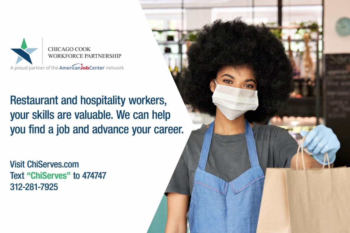 Southern Smoke Foundation has more than $3 million dollars available through its Chicago Restaurant Worker Relief Fund available to help Chicago and Cook County restaurant, bar and coffee shop workers who are experiencing hardship from the COVID-19 crisis. This fund provides emergency relief grants based on need to these workers who have lost wages or employment due to the shutdown for the pandemic. Grants will be awarded to applicants who meet eligibility requirements, including demonstrated need, as assessed by Southern Smoke Foundation, a nonprofit organization that also administers a national food and beverage Emergency Relief fund. Click here to learn more and apply today. The IRA Educational Foundation's Employee Relief Fund is also available to restaurant and hospitality employees across Illinois that have experienced hardship due to COVID-19. Click here to learn more about the IRAEF Employee Relief Fund. ChiServes: Helping Chicago Get Back to Work
