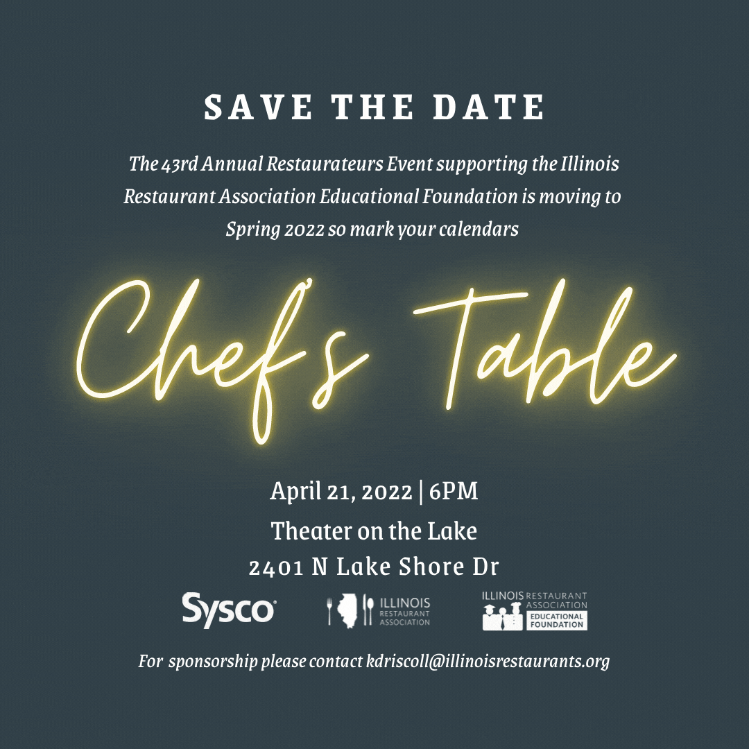 The 43rd Annual Chef's Table benefiting the IRA Educational Foundation is moving to Thursday, April 21, 2022 at Theater on the Lake in Chicago.