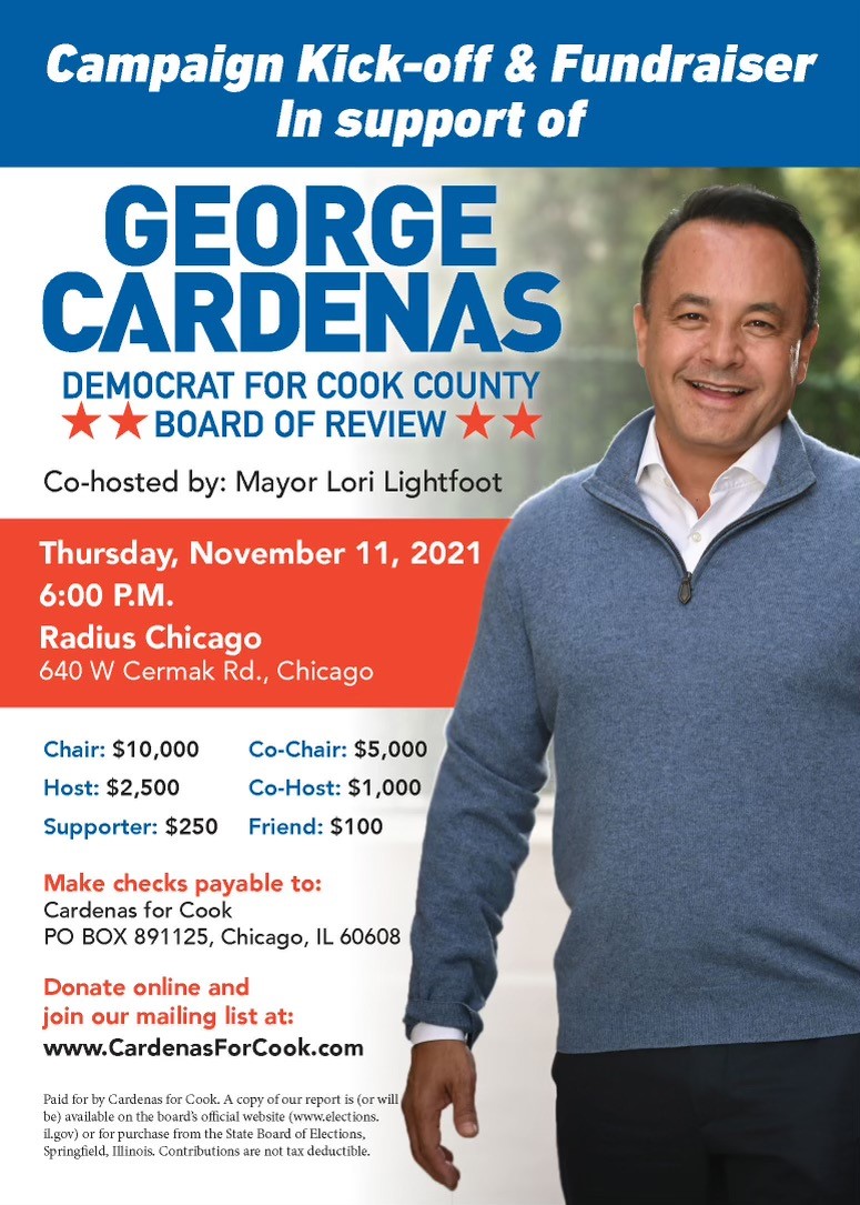 Applications to join the program are due Monday, November 8. Click here for more information. Cardenas for Board of Review EventYou are invited to attend the campaign kick-off for George Cardenas for Cook County Board of Review on Thursday, November 11 at 6:00 p.m. at Radius Chicago. Click here to view the invitation. Click here for more information.