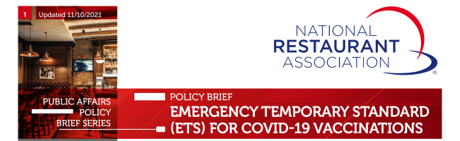 Below are the latest updates regarding OSHA’s ETS for COVID-19 in the workplace from the National Restaurant Association.