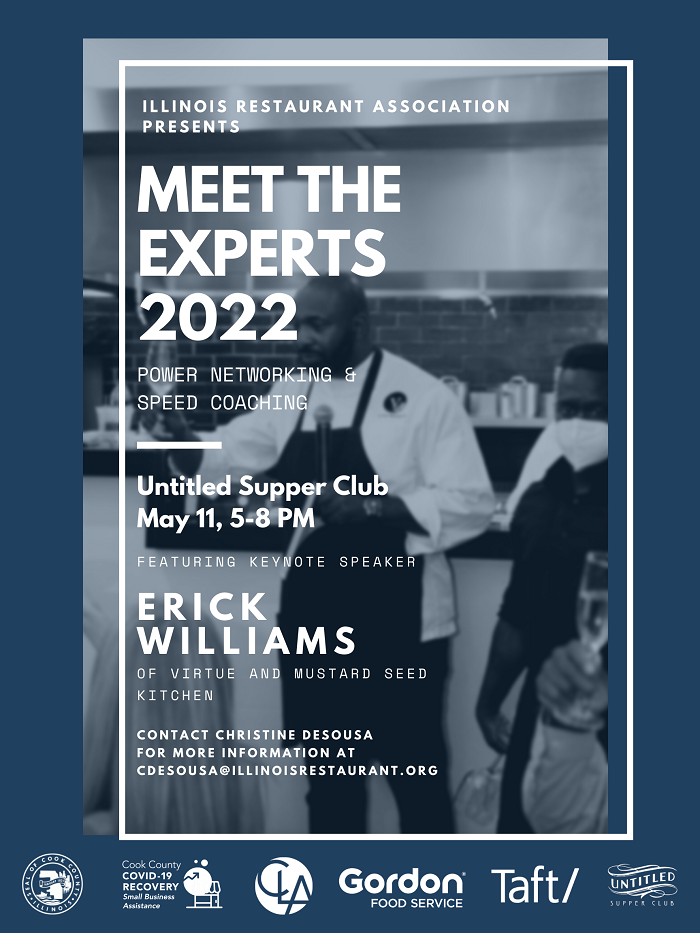 Save the date for the IRA's most popular networking event of the year - Meet The Experts! Coming back Wednesday, May 11 from 5:00 to 8:00 p.m. at Untitled Supper Club, this event offers restaurant and hospitality operators the opportunity to
