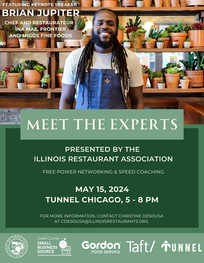 This event offers restaurant and hospitality operators the opportunity to connect one-on-one with some of the biggest restaurateurs in the business, plus experts in HR, public relations, law, accounting, licensing, insurance, and more. This event is in thanks to our partnership with the Cook County Small Business Source and is made possible by our sponsors: Gordon Food Service, Taft Law, and Tunnel Chicago. How it works: Operators (restaurant/hospitality owners, managers, and employees) can select five (5) preferred experts to meet with during the event for 10 minute sessions. Consider it an